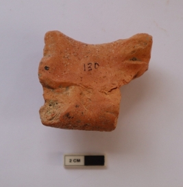 | Description / विवरण | A terracotta animal figurine. The middle portion of body is remains, legs and face are missing |