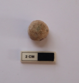 | Description / विवरण | A sling ball in a spherical shape. It is dull red in color |