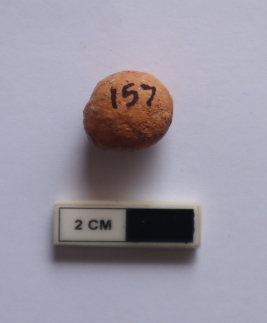 | Description / विवरण | A sling ball in a spherical shape. It is red in color |