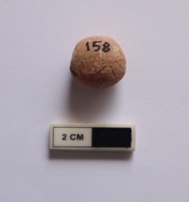 | Description / विवरण | A sling ball in a spherical shape. It is red in color |