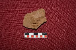 | Description / विवरण | Brick brown colour human face on a pot shred. The facial features are made on the surface of the potsherd itself . it is having circular button shaped bulging eyes made by applique technique , a lump indicating the nose, and mouth is indicated by a deep groove. . Reverse side is plain. It has medium fabric. |