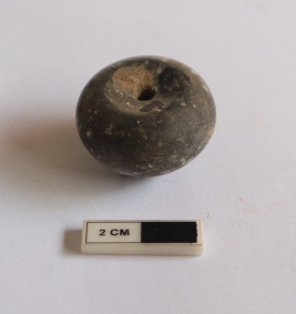 | Description / विवरण | A terracotta arecanut shape bead. It is black in color |