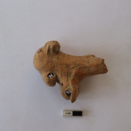 | Description / विवरण | A terracotta toy cart, fragmentary in condition, with approximately half of the body and all legs missing. The surviving portion is made of fine terracotta, fired to a red colour. Surface details are partially preserved, though some areas show erosion or wear. No additional decorative elements are visible due to the fragmentary state. |