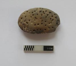 | Description / विवरण | A terracotta bead in a spherical shape. It is red in color |