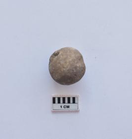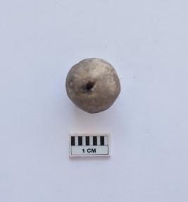 | Description / विवरण | Sling ball well baked silty in colour. A small hole is seen at one side of this slingball. |