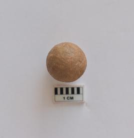 | Description / विवरण | well baked slingball made of terracotta. It is red in colour. |