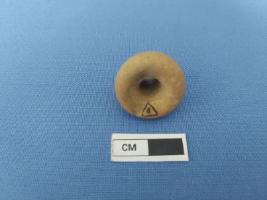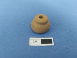 | Description / विवरण | The object is red color ghat shaped bead. It has rough and corroded surface. The rim portion has been flatten with curve around the worn out edge. |