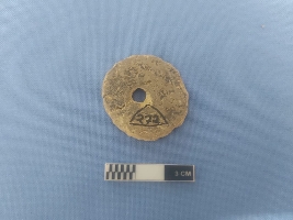 | Description / विवरण | The object is an antiquity with almost circular diameter and a perforation in center. It could have multiple use as an object of games and amusement. The object is made out of very fine but abraded piece of potsherd. |