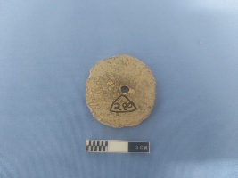 | Description / विवरण | The object is an antiquity with almost circular diameter and a perforation in center. It could have multiple use as an object of games and amusement. The object is made out of very fine but abraded piece of potsherd. |
