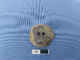| Description / विवरण | The object is a subject of games and amusements which has almost circular shape and two perforations on its flat surface. It may have been use as net sinker. |