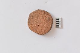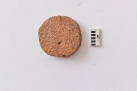 | Description / विवरण | Hopscotch made of fine baked clay, on the surface of it an unfinished perforation is seen, the edges are un-even and its red in colour. |