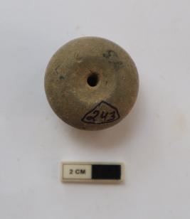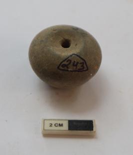 | Description / विवरण | An arecanut shape bead. It is gray in color |