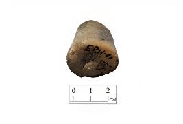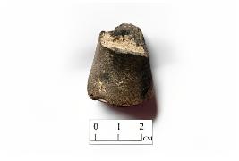 | Description / विवरण | Games man made of terracotta. It is partly grey and red in colour due to firing. It has been chopped off at the upper side. Slight depression is visible at the base. |