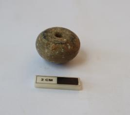 | Description / विवरण | An arecanut shape bead. It is gray in color |