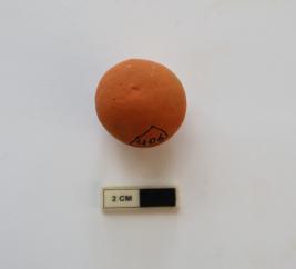 | Description / विवरण | A sling ball in spherical shape. It is red in color |