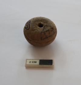 | Description / विवरण | A arecanut shape bead. it is gray in color |