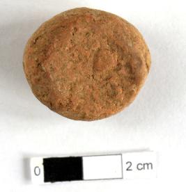 | Description / विवरण | It is a Terracotta sealing of baked clay. The upper half, which separated from the lower by a double horizontal line, depicting two deer and a wheel in-between, below it there is legend which is worn out. |