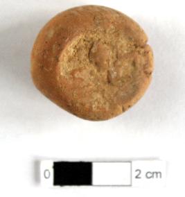 | Description / विवरण | It is a Terracotta sealing of baked clay. The upper half, which separated from the lower by a double horizontal line, depicting two deer and a wheel in-between, below it there is legend which is worn out. |