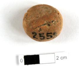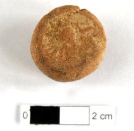 | Description / विवरण | It is a Terracotta sealing of baked clay. The upper half, which separated from the lower by a double horizontal line, depicting two deer and a wheel in-between, below it there is legend which is worn out. |
