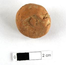 | Description / विवरण | It is a Terracotta sealing of baked clay. The upper half, which separated from the lower by a double horizontal line, depicting two deer and a wheel in-between, below it there is legend which is worn out. |