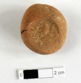 | Description / विवरण | It is a Terracotta sealing of baked clay. The upper half, which separated from the lower by a double horizontal line, depicting two deer and a wheel in-between, below it there is legend which is worn out. |