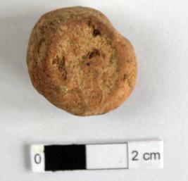 | Description / विवरण | It is a Terracotta sealing of baked clay. The upper half, which separated from the lower by a double horizontal line, depicting two deer and a wheel in-between, below it there is legend which is worn out. |