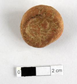| Description / विवरण | It is a Terracotta sealing of baked clay. The upper half, which separated from the lower by a double horizontal line, depicting two deer and a wheel in-between, below it there is legend which is worn out. |
