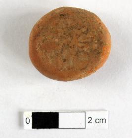 | Description / विवरण | It is a Terracotta sealing of baked clay. The upper half, which separated from the lower by a double horizontal line, depicting two deer and a wheel in-between, below it there is legend which reads Sri Saddharmmachakkra. |