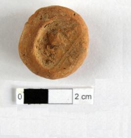 | Description / विवरण | It is a Terracotta sealing of baked clay. The upper half, which separated from the lower by a double horizontal line, depicting two deer and a wheel in-between, below it there is no legend. |