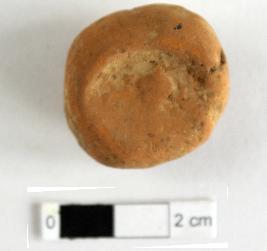 | Description / विवरण | It is a Terracotta sealing of baked clay. The upper half, which separated from the lower by a double horizontal line, depicting two deer and a wheel in-between, below it there is legend which is worn out. |
