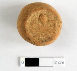 | Description / विवरण | It is a Terracotta sealing of baked clay. The upper half, which separated from the lower by a double horizontal line, depicting two deer and a wheel in-between, below it there is legend which is worn out. |