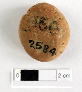 | Description / विवरण | It is a Terracotta sealing of baked clay. The upper half, which separated from the lower by a double horizontal line, depicting two deer and a wheel in-between, below it there is legend which is worn out. |