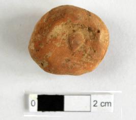 | Description / विवरण | It is a Terracotta sealing of baked clay. The upper half, which separated from the lower by a double horizontal line, depicting two deer and a wheel in-between, below it there is legend which is worn out. |