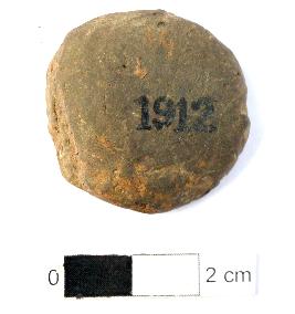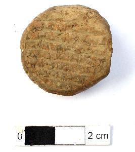 | Description / विवरण | It is a circular Terracotta sealing of baked clay with Buddhist creed written on it in seven lines, which is worn out. |