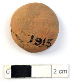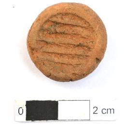| Description / विवरण | It is a circular Terracotta sealing of baked clay with Buddhist creed written on it in five lines, which is worn out. |