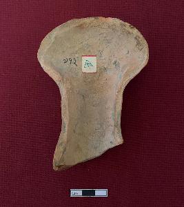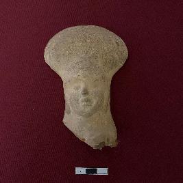 | Description / विवरण | This is a terracotta fragment of a male figure in red colour and has a huge crown over the head. The crown is oval in shape. Elongated ears and eyes, nose-lips are partially visible. |