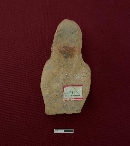 | Description / विवरण | A terracotta fragment of the male figure which is in red colour. The face has lost its sharpness. Both the hands are resting on the belly portion. The body is straight and the face is highly mutilated. |