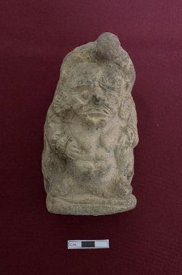 | Description / विवरण | This is a terracotta Yakshi figure in a seated position. The right hand is resting on the belly while other is on thigh.The face is mutilated and there is a turban in front of the head. a perforation can be seen on the backside. |