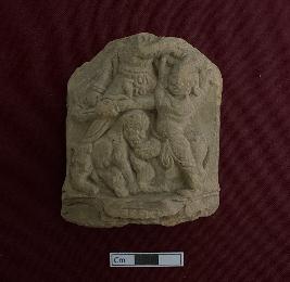 | Description / विवरण | A fragmentary terracotta plaque showing Mahisasurmardani. The lower portion of the figurine is seen with the lion at the bottom along with the demon. The top portion of the figurine is broken. |