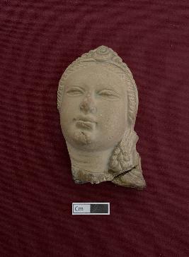 | Description / विवरण | This is a terracotta fragmentary female head in red colour. The head is adorned with crown and earring. The right ear is missing. There is a beautiful crown on the forehead. |