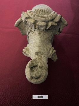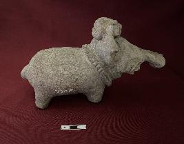 | Description / विवरण | This is the representation of elephant decorated with head band having rectangular design. It has twisted trunk and opened mouth. The figure is adorned with garland on the neck of the object. Legs are broken. |