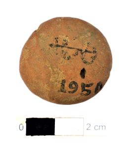 | Description / विवरण | It is a Terracotta sealing of baked clay. The upper half, which separated from the lower by double horizontal line, depicting two deer and a wheel in-between, below it there is legend which reads Sri Saddharmmachakkra. |
