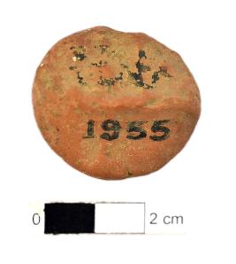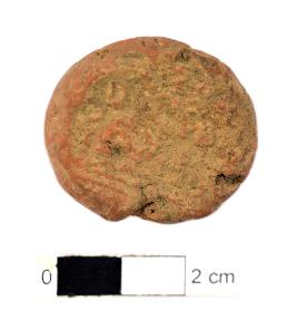 | Description / विवरण | It is a Terracotta sealing of baked clay. The upper half, which separated from the lower by double horizontal line, depicting two deer and a wheel in-between, below it there is legend which reads Sri Saddharmmachakkra. |