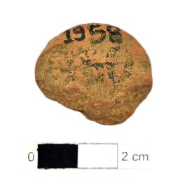 | Description / विवरण | It is a Terracotta sealing of baked clay. The upper half, which separated from the lower by double horizontal line, depicting two deer and a wheel in-between, below it there is legend which reads Sri Saddharmmachakkra. |