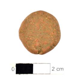 | Description / विवरण | It is a Terracotta sealing of baked clay. The upper half, which separated from the lower by double horizontal line, depicting two deer and a wheel in-between, below it there is legend which reads Sri Saddharmmachakkra. |