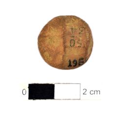 | Description / विवरण | It is a Terracotta sealing of baked clay. The upper half, which separated from the lower by double horizontal line, depicting two deer and a wheel in-between, below it there is legend which reads Sri Saddharmmachakkra. |