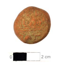 | Description / विवरण | It is a Terracotta sealing of baked clay. The upper half, which separated from the lower by double horizontal line, depicting two deer and a wheel in-between, below it there is legend which reads Sri Saddharmmachakkra. |