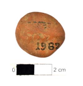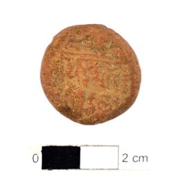 | Description / विवरण | It is a Terracotta sealing of baked clay. The upper half, which separated from the lower by double horizontal line, depicting two deer and a wheel in-between, below it there is legend which reads Sri Saddharmmachakkra. |