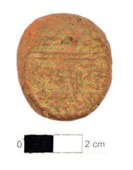 | Description / विवरण | It is a Terracotta sealing of baked clay. The upper half, which separated from the lower by double horizontal line, depicting two deer and a wheel in-between, below it there is legend which reads Sri Saddharmmachakkra. |
