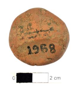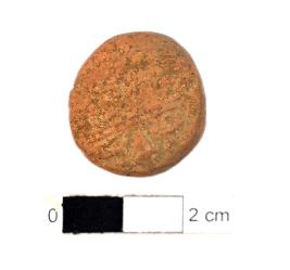 | Description / विवरण | It is a Terracotta sealing of baked clay. The upper half, which separated from the lower by double horizontal line, depicting two deer and a wheel in-between, below it there is legend which reads Sri Saddharmmachakkra. |